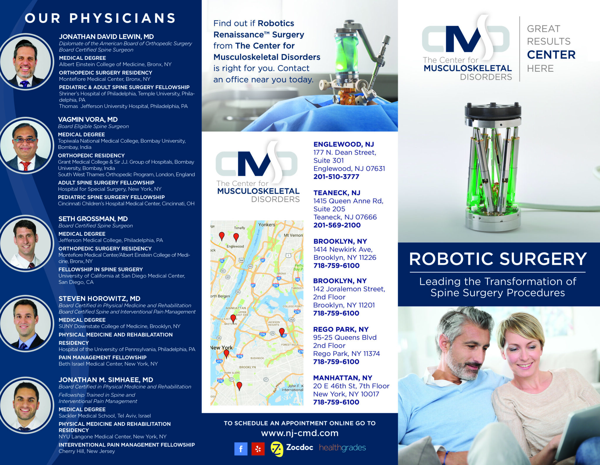 Brochure design for an orthopedic and spinal disorders office. This brochure was designed to highlight some information on the minimally invasive procedures offered with robotic aided surgery.